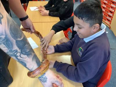 Children got up close and personal with a range of animals today when ZooLab visited school. Spiders, snakes, snails and some more cuddly animals were introduced to the children so that they could learn about their needs, how they have adapted to their natural environments and how we can protect them for future generations. Children (and staff) were given the opportunity to handle some of the creatures with some choosing to keep a safe distance.